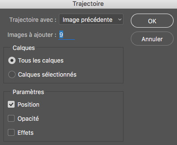 Une fois vos éléments déplacés, cliquez sur l'icône "Trajectoire des images animées" :