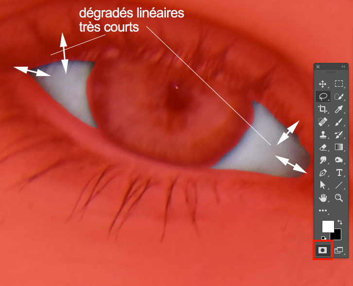 Une fois le blanc d'un premier oeil sélectionné, cliquez sur l'icône Mode masque (raccourci : lettre Q).