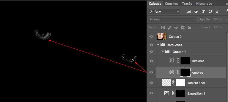 Faites un groupe (CMD + G) avec l'ensemble des calques ayant servis à créer la fameuse "catchlight" et nommez le groupe de façon pertinente.