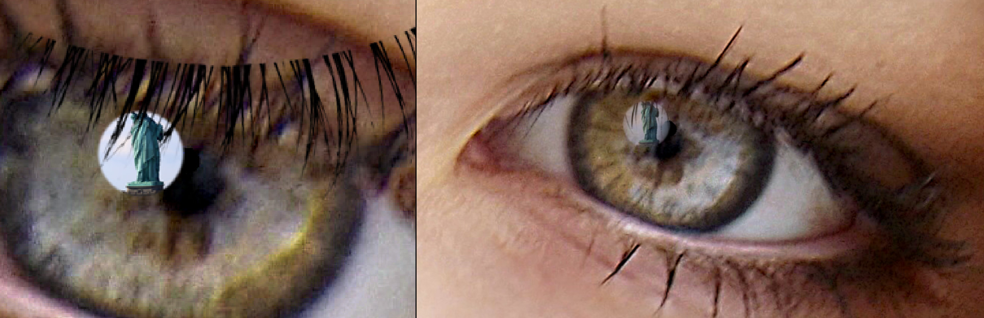 Nous allons maintenant rajouter un reflet de lumière entrant dans l'iris. En anglais, ils appellent ça catchlight J'ai choisi la statue de la Liberté comme reflet de lumière.